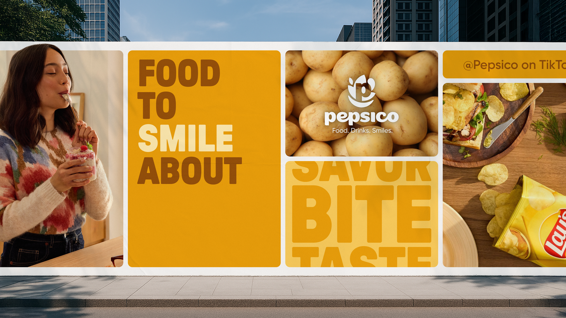 The new PepsiCo identity reimagines the company as a culinary brand that unites food and beverages under one cohesive system. The refreshed logo embodies the idea of “Food, Drinks, Smiles,” featuring a unified symbol that integrates wheat, water, and a smiling bowl. Together, PepsiCo’s diverse portfolio of snacks and beverages brings smiles to everyday life.