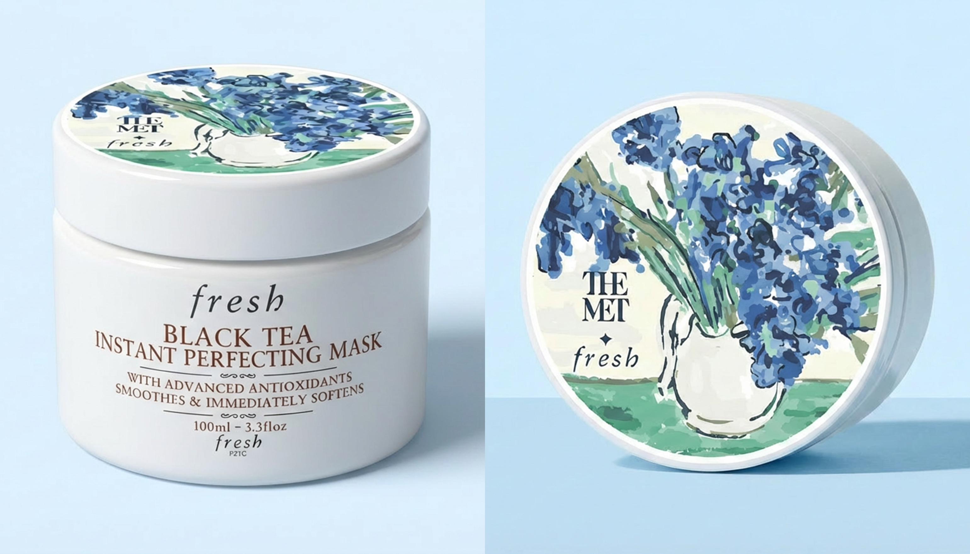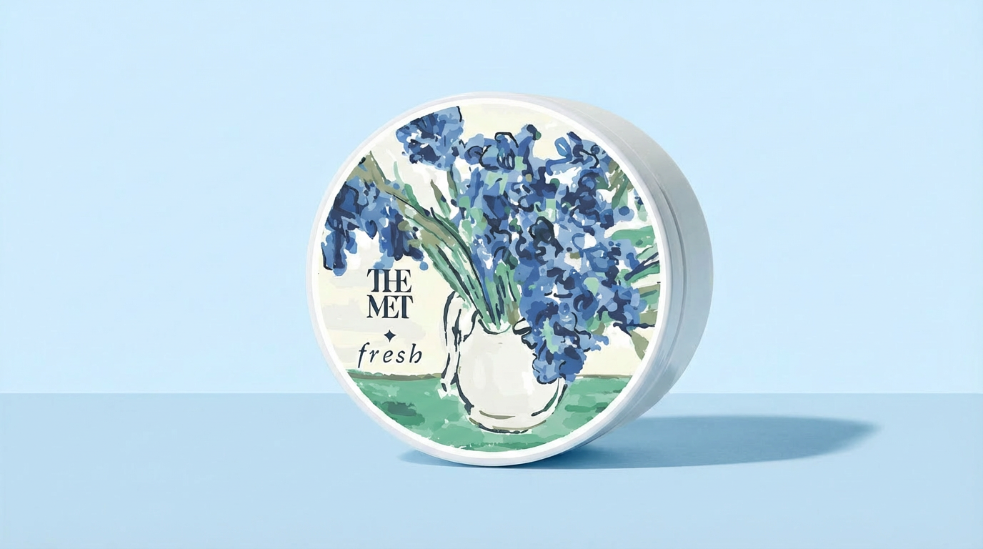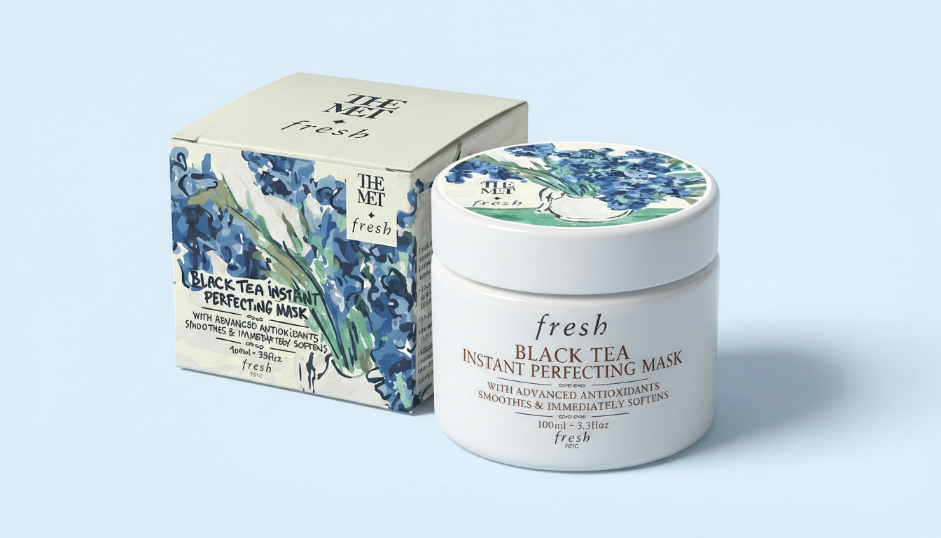 Collaboration between Fresh Cosmetics and The Metropolitan Museum of Art for the China market. Fresh, part of LVMH Perfumes and Cosmetics, creates limited-edition and seasonal holiday products alongside its core collection. Each year, Fresh partners with The Met to release a special edition of one of its best-selling products. This year, the Black Tea Instant Perfecting Mask was chosen to feature Vincent van Gogh’s Irises as the highlighted artwork.