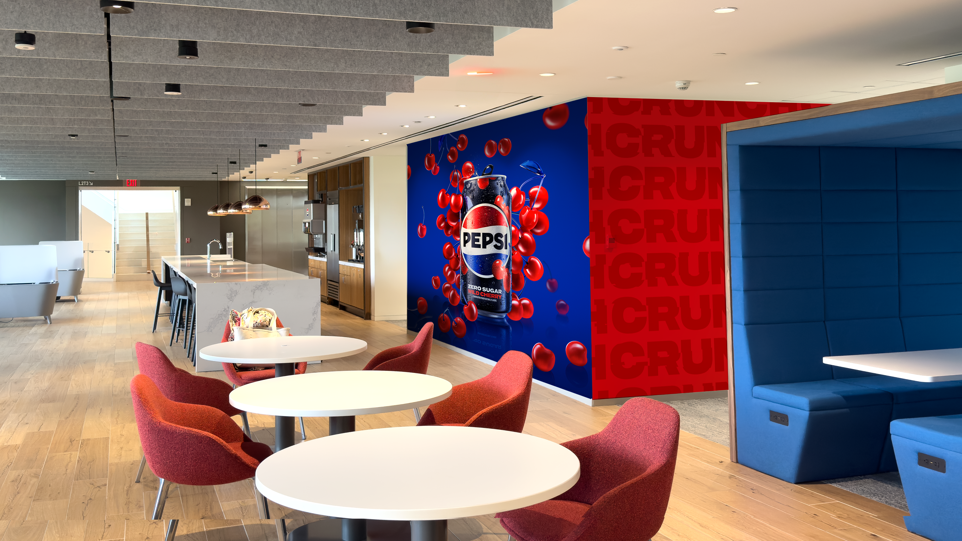 As PepsiCo launched its new corporate brand identity, I led the design and execution of environmental graphics for the company’s headquarters in Purchase, NY. The project integrated the refreshed PepsiCo visual language with iconic house brands, creating a cohesive and vibrant workplace experience that brought the new identity to life across the office space.